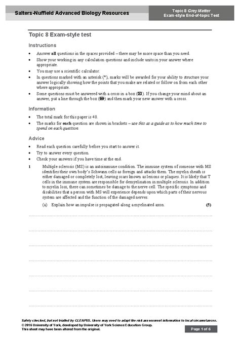 salters end of module test answers